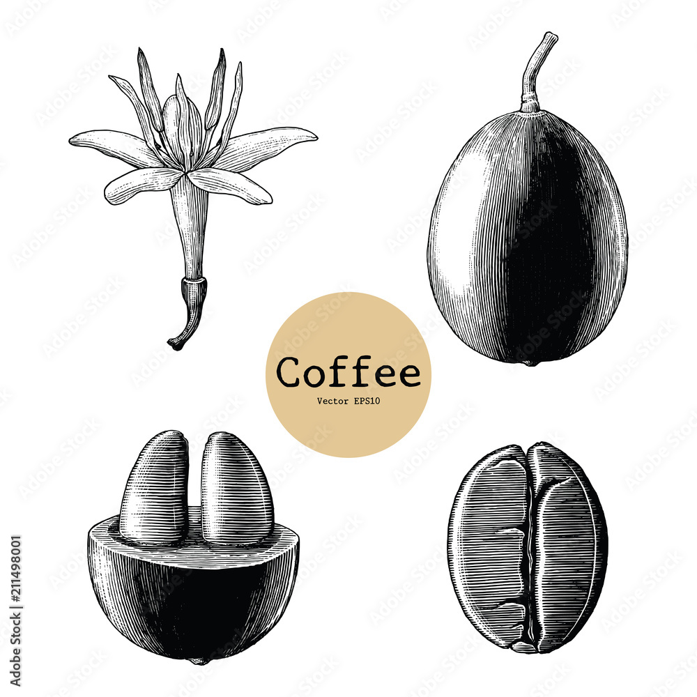 Coffee Flower Coffee Bean Hand Drawing Vintage Clip Art Isolated On White Background Stock Vector Adobe Stock